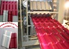 PVC Composite Glazed Tile Production Line -- Plastic Machinery -- Extruder Brief introduction Composite glazed tile production line is a continuous production unit of high efficiency, which insists of tile forming auxiliary machine and extruder connected with die head. This production line adopts electromechanical integration. It has such advantages: high efficiency, rational and compact in structure, easy maintenance, long use life, and etc. Features of products: fine appearance, new and unusual style, valuable taste. Tough and tensile in texture, bright and clean, durable in use, and such advantages as fire prevention, antifreezing, anti-corrosion, and etc. Applications: garden style factory, scenic spots, pavilion and buildings, guesthouse and cottage, exhibition, holiday village, household, etc. Main technical parameters: Extruding speed: 0-4000m/min Max. Traction power: 40KN Electric driving power: 4KW Template material: adopt special aluminum alloy, which has the characteristic of light weight, high intensity, good wearability, etc. Cooling mode of template: wind cooling External air source: exhaust volume 0.67 M3/min Exhaust pressure 0.7MPa It’s equipped with guide rail, which can move 3000mm back and forth.